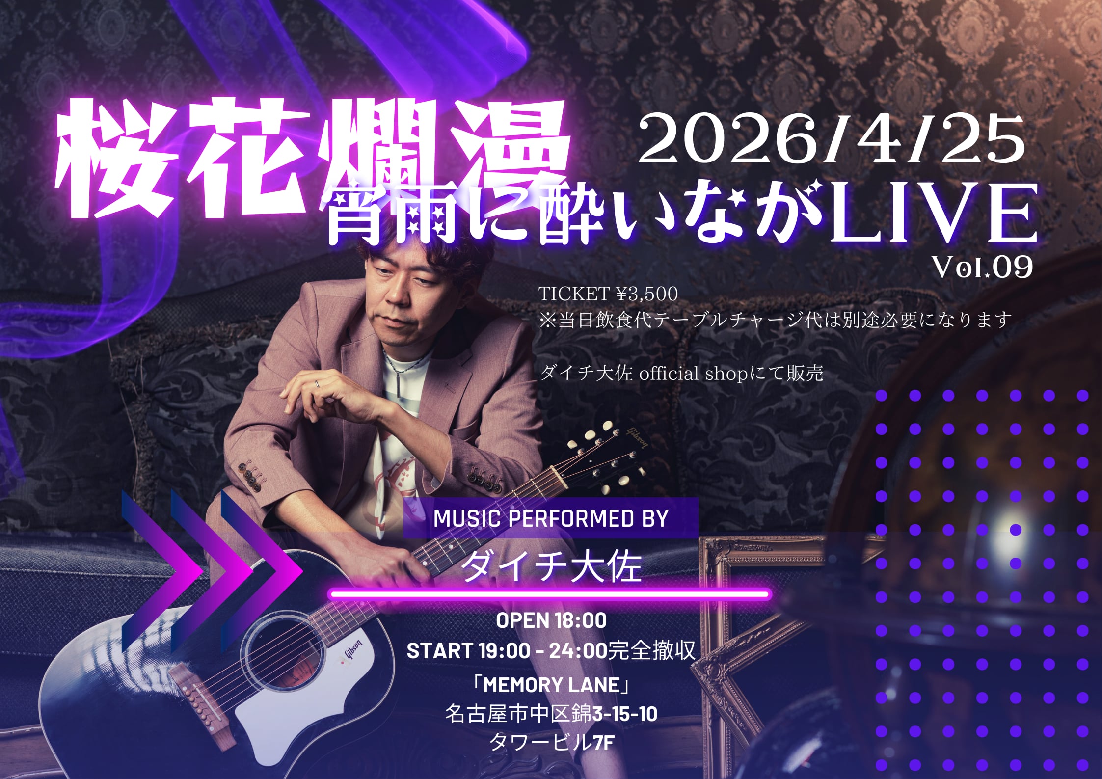 新しい体験が待っている!名古屋のライブBARでダイチ大佐の特別なライブイベントが開催されます。音楽と情熱が交錯する、この日だけの貴重な時間をお楽しみください。ダイチ大佐のパフォーマンスは、あなたの心を打つ感動的な瞬間を提供し、忘れられない思い出となることでしょう。